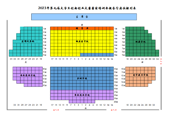 附件:2023年第九届大学生创新创业大赛赛前培训会报告厅座位图